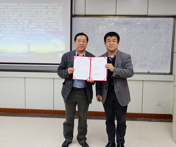 2014年11月14日下午,公司董事長周和生應(yīng)重慶大學(xué)邀請,為重慶大學(xué)建設(shè)管理與房地產(chǎn)學(xué)院學(xué)生及相關(guān)部門工作人員作了題為“建設(shè)項(xiàng)目全過程投資管理及審計(jì)系統(tǒng)介紹”的學(xué)術(shù)報(bào)告。并向?qū)W院捐贈(zèng)“建設(shè)項(xiàng)目全過程投資管理與審計(jì)系統(tǒng)”軟件,大力支持學(xué)校教學(xué)工作。竹隰生院長代表學(xué)院出席此次捐贈(zèng)儀式。